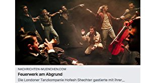Anlässlich des Gastspieles von Hofesh Shechter, die am 6. / 7. September 2018 im Muffatwerk in München ihre aktuelle Produktion „Grand Finale“ zeigten, habe ich eine Kurzkritik als Gastbeitrag bei nachrichten-muenchen.com verfasst. Zur Kritik „Feuerwerk am Abgrund“ Weitere Informationen zur Kompanie und zur Produktion finden Sie hier.